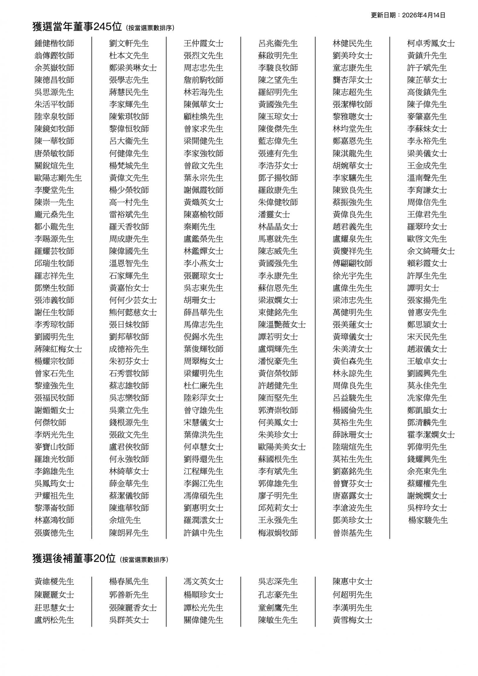 2026年度當年董事選舉結果